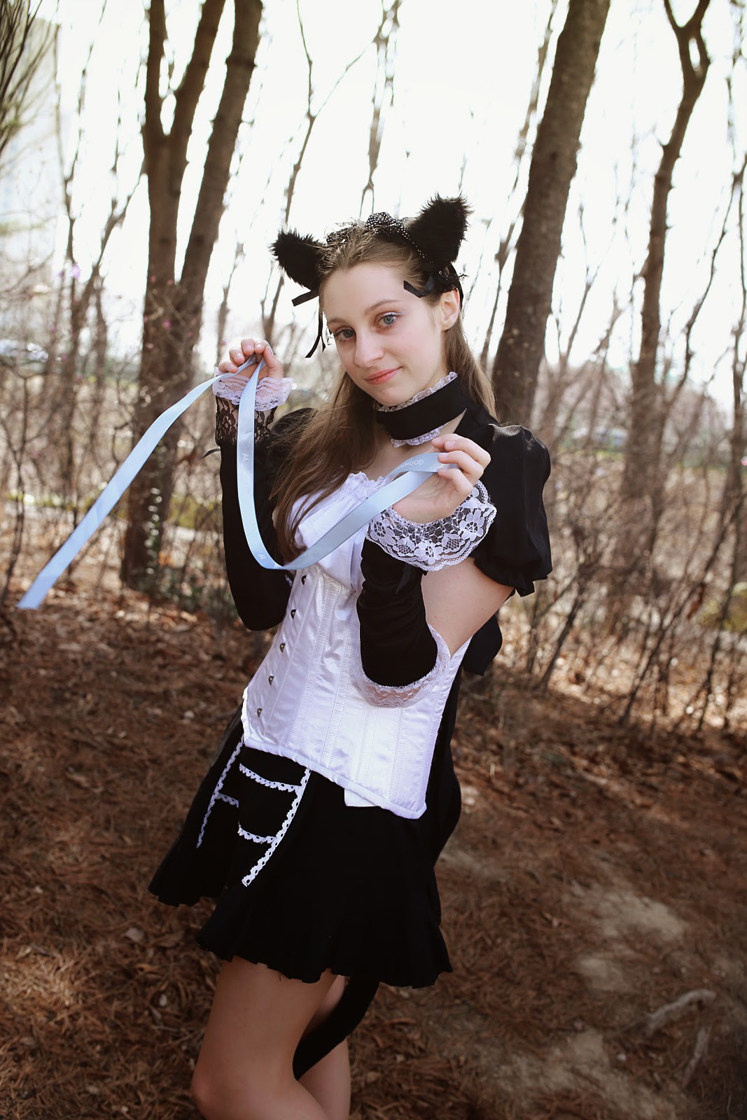 So Anna wasn't able to come to one of the cosplay weekends because she is working on making her sword and fixing my stuff (thanks again Anna) so I went by myself in my maid cat costume. I attempted to do my own makeup. It was okay but not as good as if Anna or Alexa did it. But that is okay because it was still fun and I managed to work the costume out even with the corset, tail, and bows all twisting together.